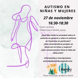 Autismo en niñas y mujeres en La Tribu. Valladolid. Inscripción previa Dónde La Tribu. Plaza Porticada 40-41. Valladolid. Precio 10€