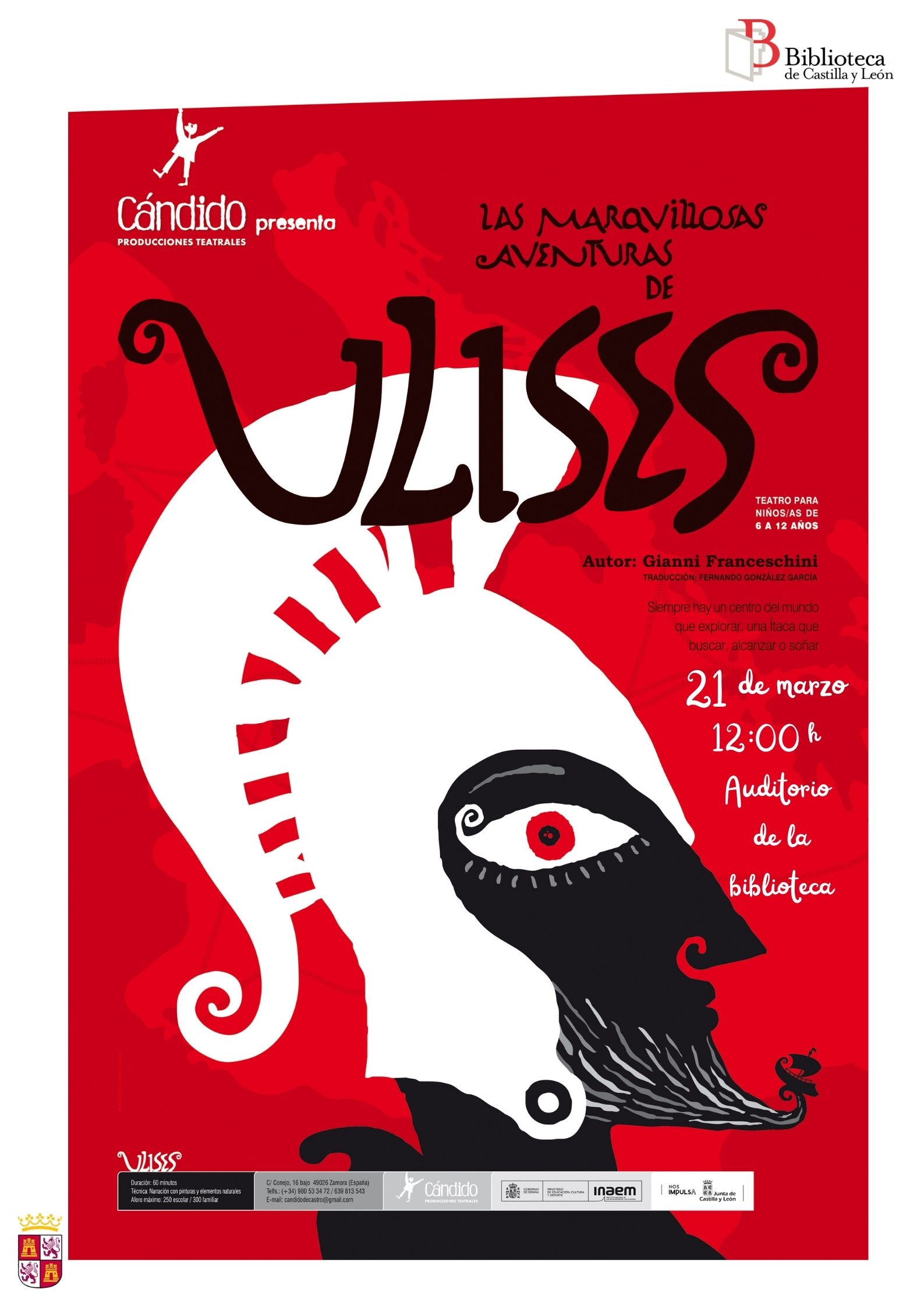 Cándido Producciones Teatrales presenta "Las maravillosas aventuras de Ulises". Biblioteca Pública de Castilla y León, Valladolid. Niños acompañados Inscripción previa Dónde Biblioteca Pública de Castilla y León, Valladolid.