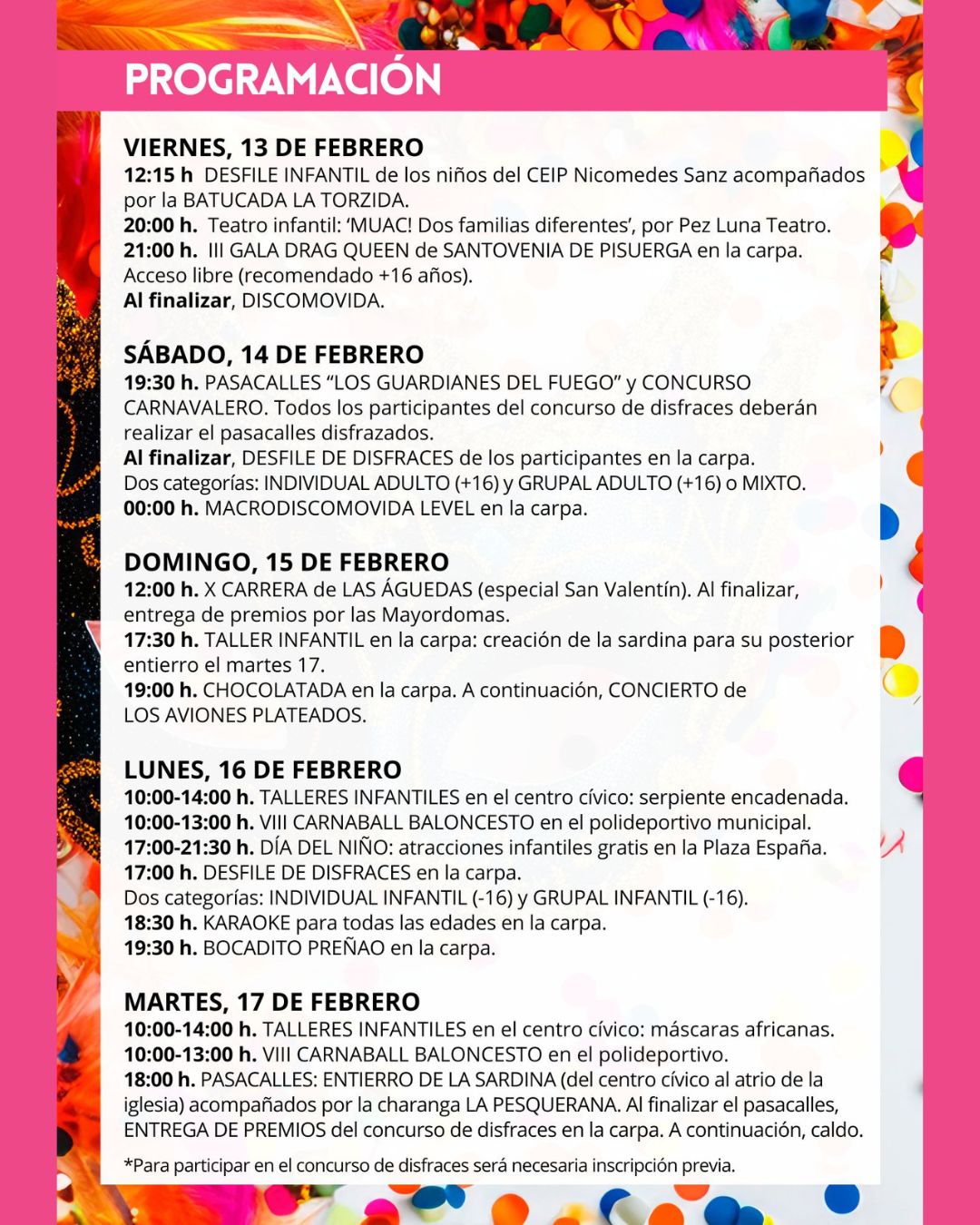 Carnaval 2026. Santovenia de Pisuerga (Valladolid). Niños acompañados Dónde Santovenia de Pisuerga (Valladolid). Programa Carnaval 2026. Santovenia de Pisuerga (Valladolid).