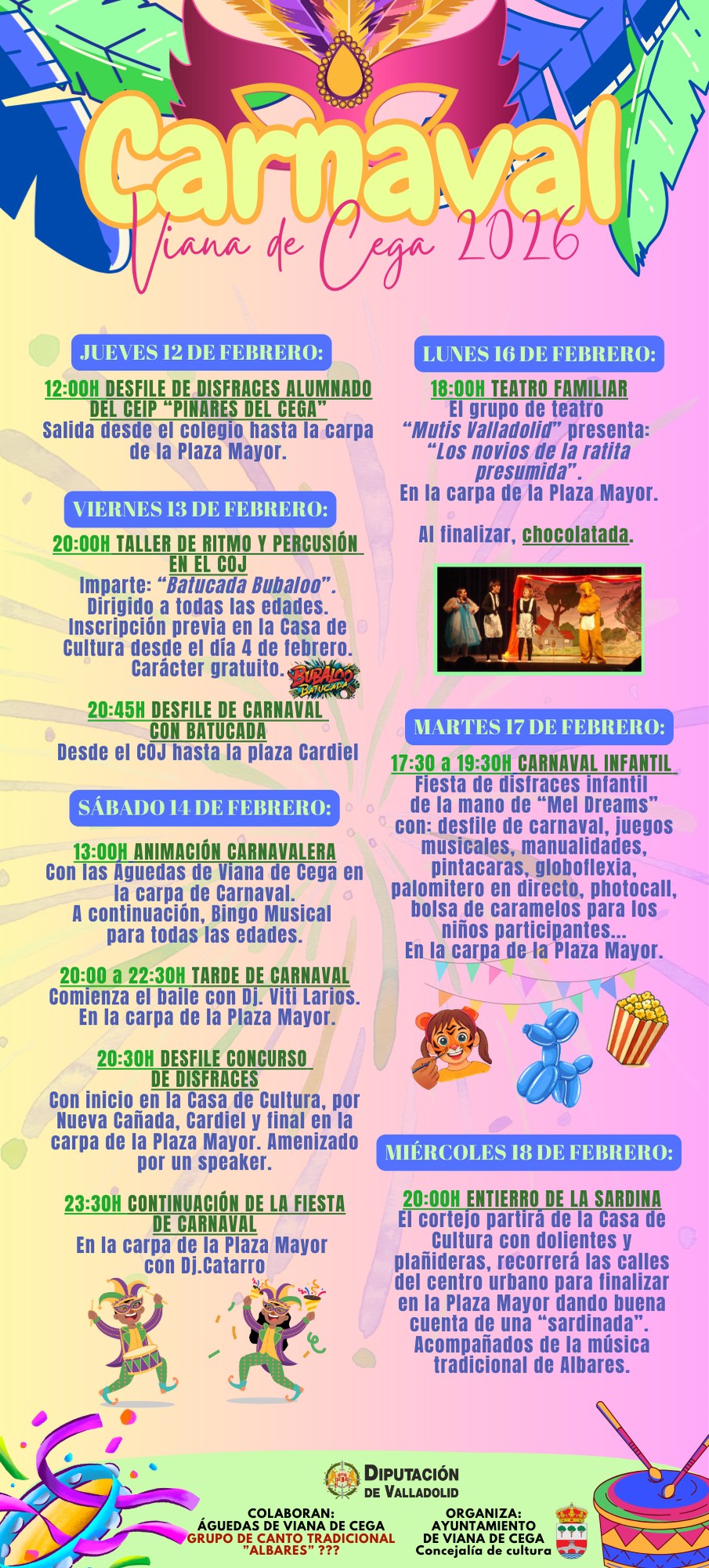 Carnaval 2026. Viana de Cega (Valladolid). Niños acompañados Dónde Viana de Cega (Valladolid). Programa Carnaval 2026. Viana de Cega (Valladolid).