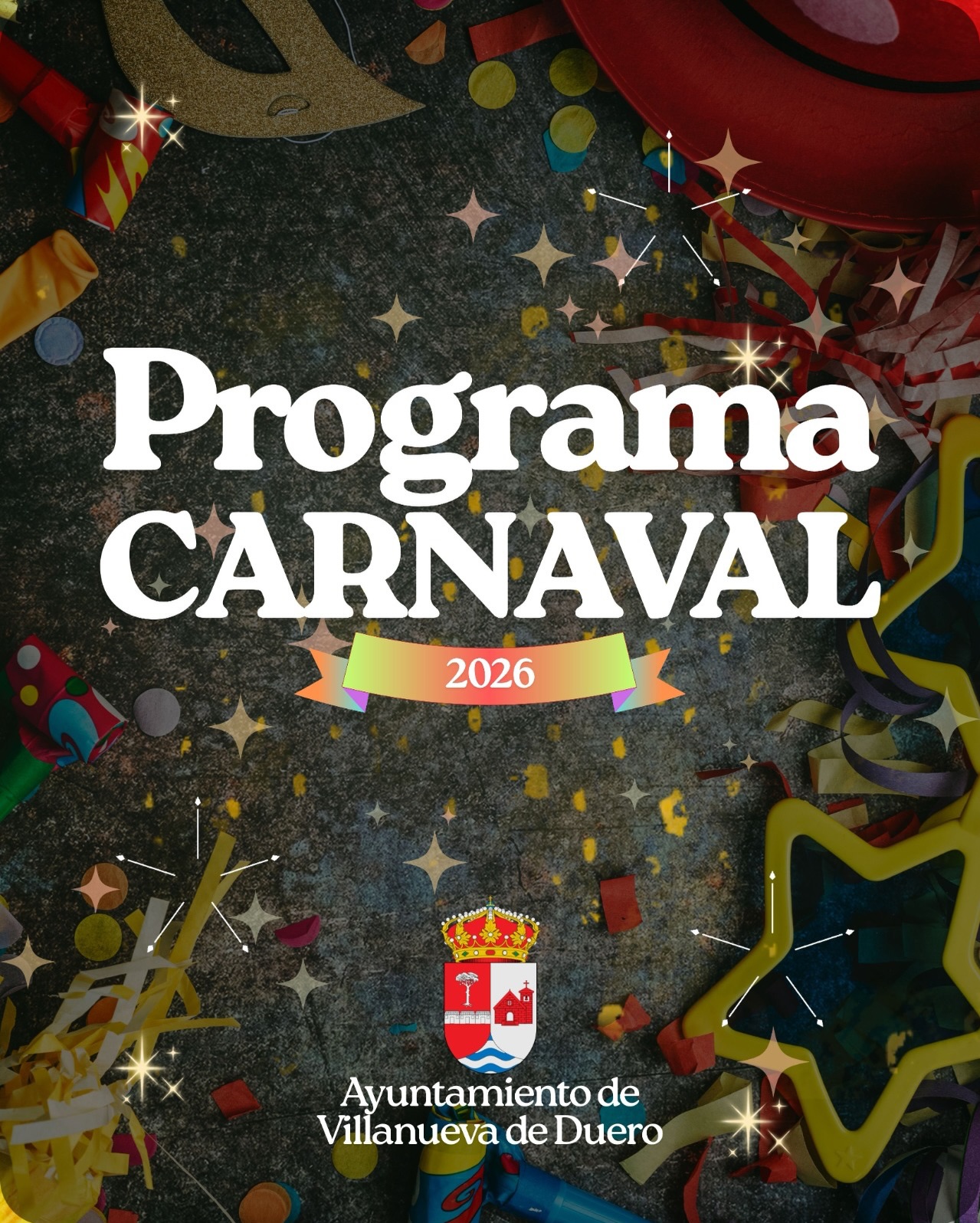Carnaval 2026. Villanueva de Duero (Valladolid). Niños acompañados Dónde Villanueva de Duero (Valladolid). Programa 1 Carnaval 2026. Villanueva de Duero (Valladolid). Programa 2 Carnaval 2026. Villanueva de Duero (Valladolid). Programa 3 Carnaval 2026. Villanueva de Duero (Valladolid).