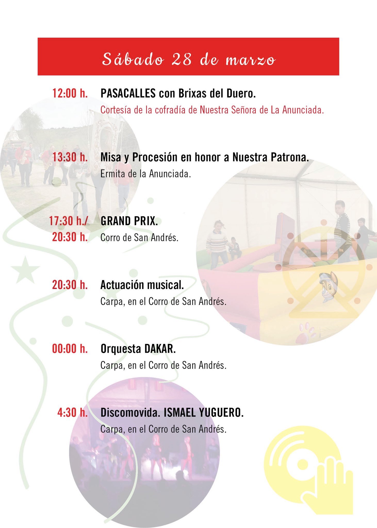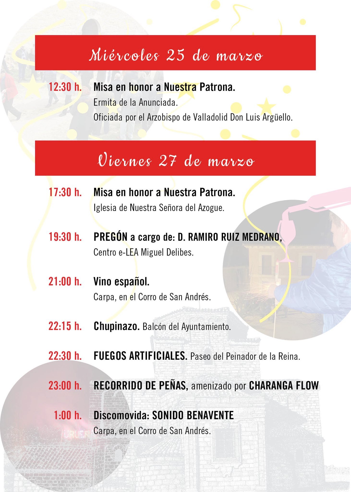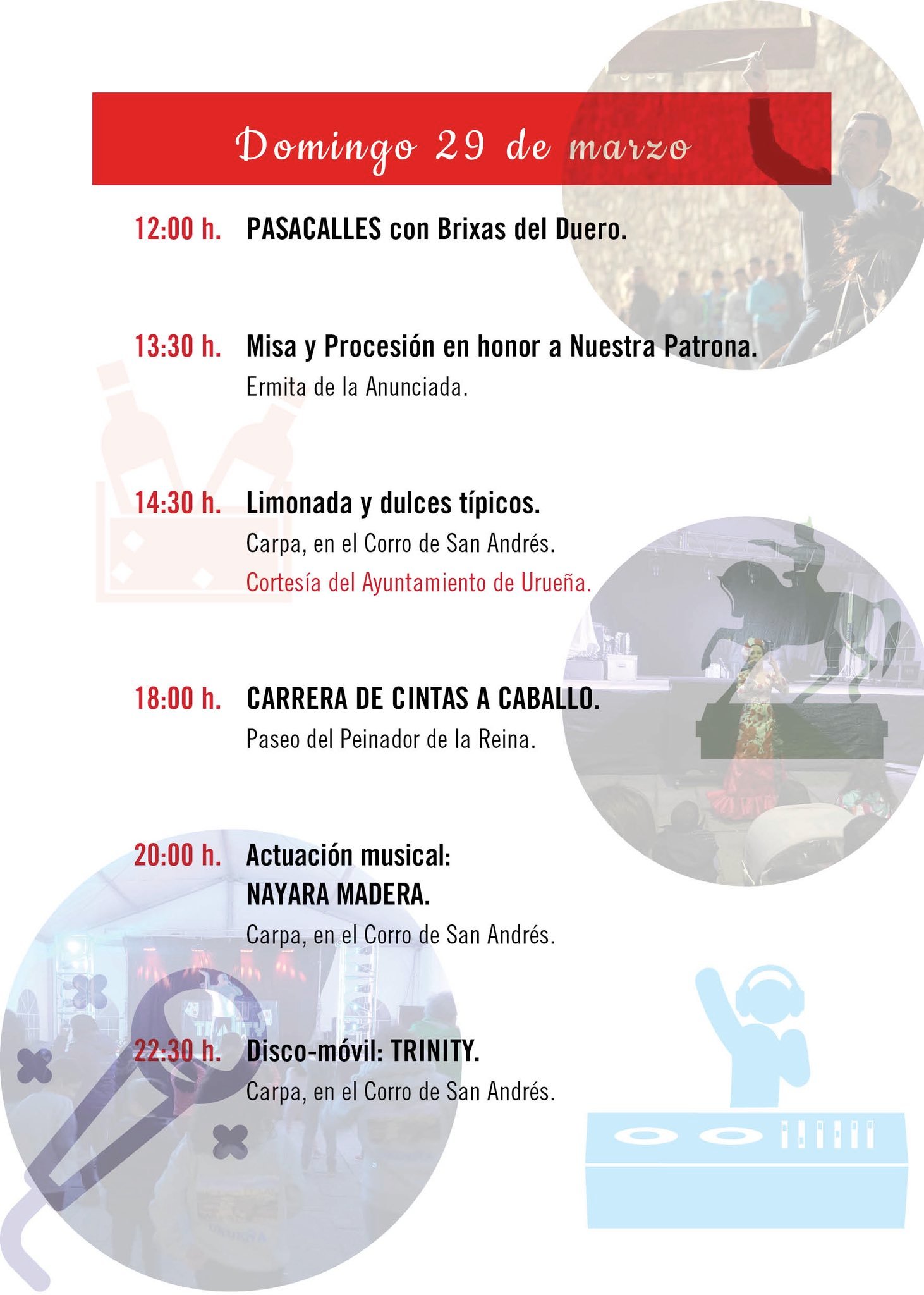 Fiestas de la Virgen de la Anunciada. Urueña (Valladolid). Niños acompañados Inscripción previa Dónde Urueña (Valladolid). Programa 1 Fiestas de la Virgen de la Anunciada. Urueña (Valladolid). Programa 2 Fiestas de la Virgen de la Anunciada. Urueña (Valladolid). Programa 3 Fiestas de la Virgen de la Anunciada. Urueña (Valladolid). Programa 4 Fiestas de la Virgen de la Anunciada. Urueña (Valladolid).