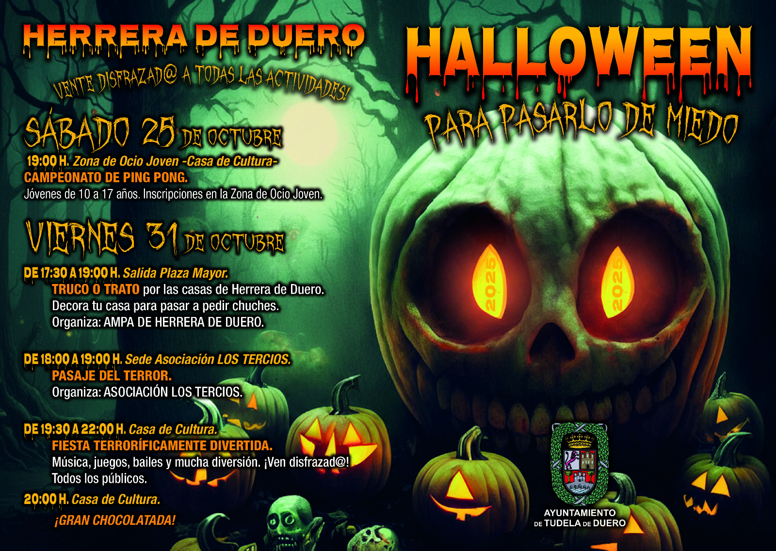 Halloween en Herrera de Duero (Valladolid). Actividad para niños Niños acompañados Inscripción previa Dónde Herrera de Duero (Valladolid). Programa Halloween en Herrera de Duero (Valladolid).