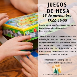Juegos de mesa. Espacio La Tribu, Valladolid.Juegos para desarrollar la resiliencia, cooperar... Niños acompañados 3-12 Dónde Espacio La Tribu, Plaza Porticada 40-41. Valladolid Precio 10€ niño, 5€ herman@