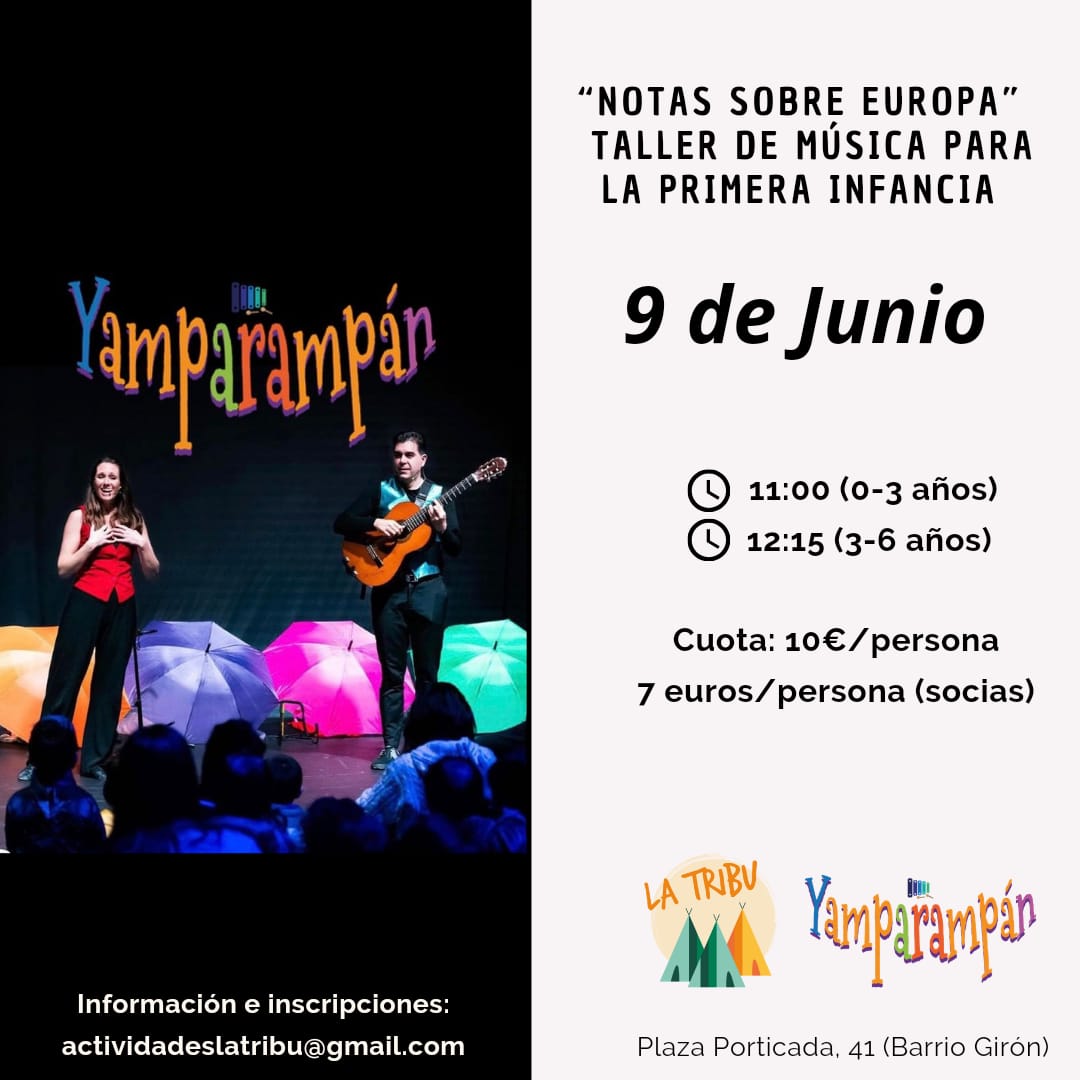 Notas sobre Europa Yamparampán. La Tribu, Valladolid.Una vez más nos visita Yamparampán con "Notas sobre Europa" un taller de música dirigido a la primera infancia que no te puedes perder11 hrs 0-3 años12:15 hrs. 3-6 años Actividad familiar 0-6 Dónde La Tribu. Plaza Porticada 41. Valladolid. Precio 10€ por persona.