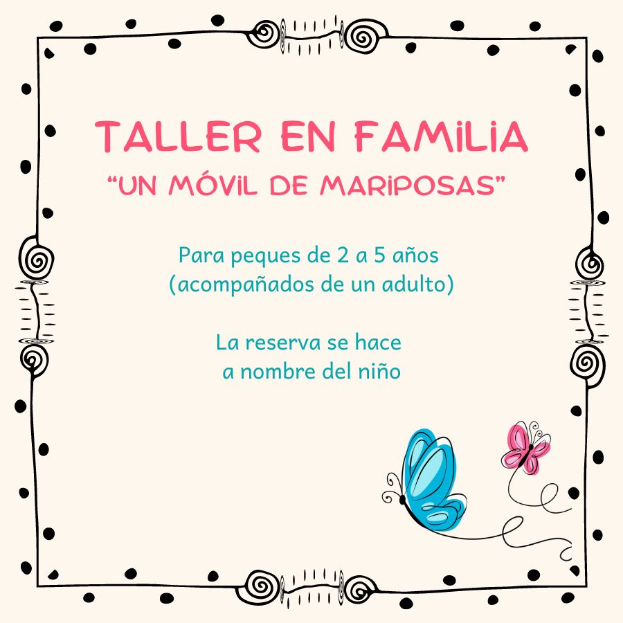 Taller en familia "Un móvil de mariposas". Librería La Marmota. Valladolid.