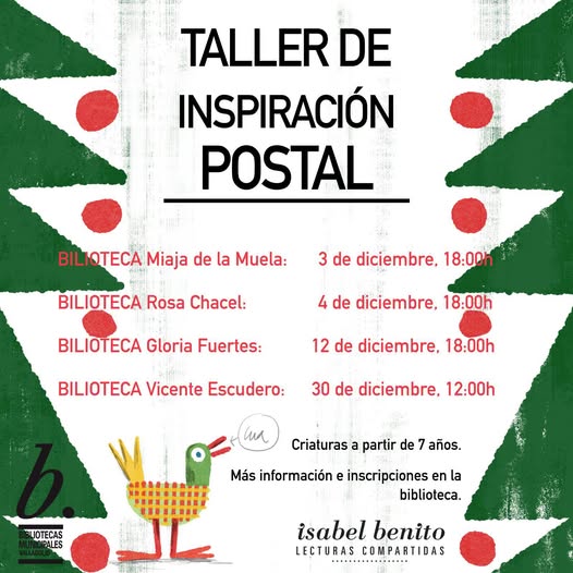 Taller de inspiración postal en las Bibliotecas. Valladolid. Niños acompañados Dónde Bibliotecas, Valladolid.