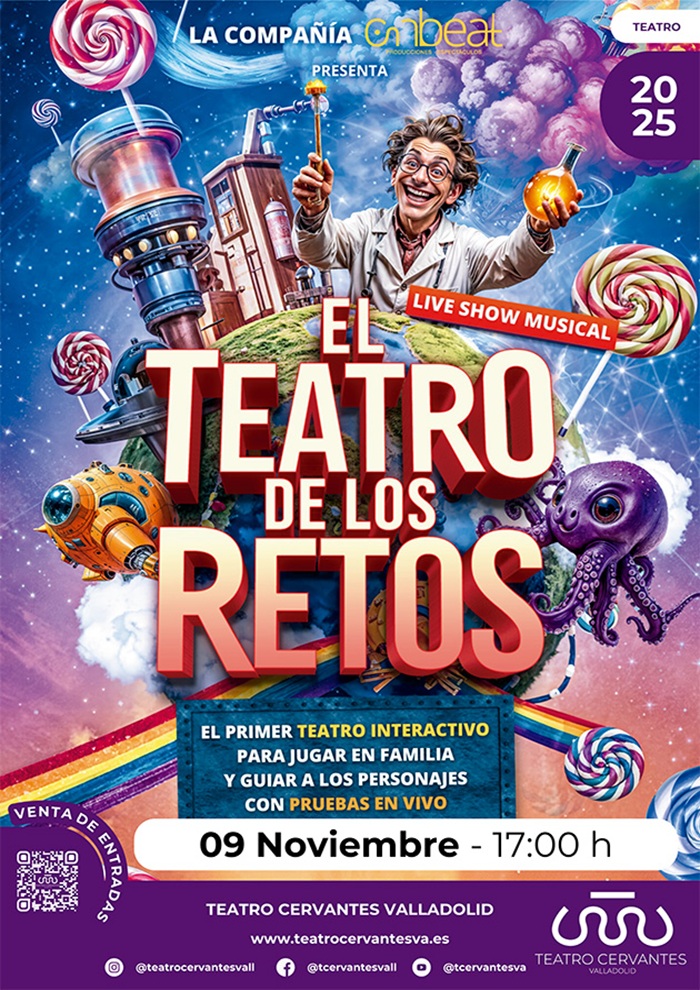 «Teatro de los Retos» es el primer teatro familiar interactivo donde el público toma las decisiones y participa activamente. Inspirado en programas de televisión, la trama gira en torno a la máquina de retos, esencial para la imaginación infantil, que deja de funcionar. El Profesor Neutrón descubre que el problema es la pérdida de imaginación de los niños debido al uso excesivo de pantallas. Para arreglarlo, el público viajará al planeta Imaginus y, superando diversas pruebas en mundos como el de los Swenees, los Máximus y la cueva de los Risis, demostrarán que la imaginación sigue viva. La interacción es constante, con participación física y a través de una aplicación móvil que permite votar en tiempo real, haciendo que cada función sea única.