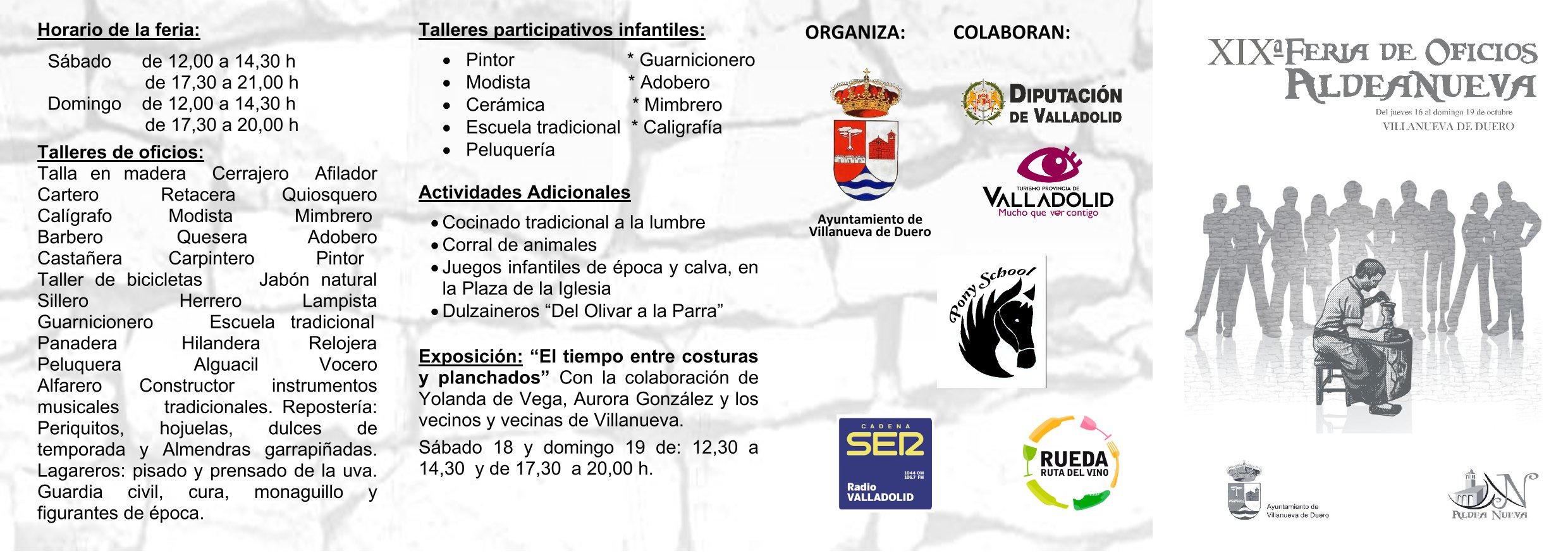 XIX Feria de Oficios Aldeanueva. Villanueva de Duero (Valladolid). Niños acompañados Dónde Villanueva de Duero (Valladolid). Programa 1 XIX Feria de Oficios Aldeanueva Programa 2 XIX Feria de Oficios Aldeanueva